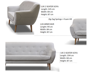 Sofy są niezwykle wygodne, większe od foteli, ale mniejsze niż