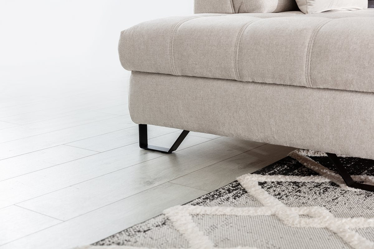 Ta stylowa rozkładana sofa została zaprojektowana z metalowymi nogami, ramą z drewna bukowego i tkaninami obiciowymi w szerokiej gamie kolorystycznej. Jest wypełniony wysoce elastyczną pianką i sprężynami zygzakowatymi dla maksymalnego komfortu, a podłokietniki są wypełnione pianką dla dodatkowego wsparcia.